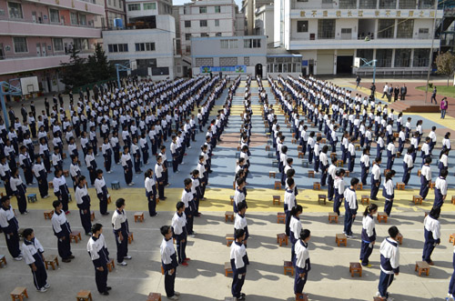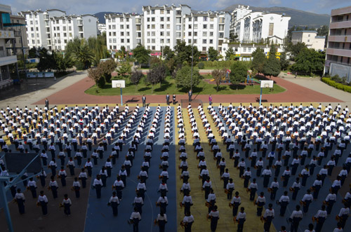 云南昆明龍泉育才學校隊列隊形展
