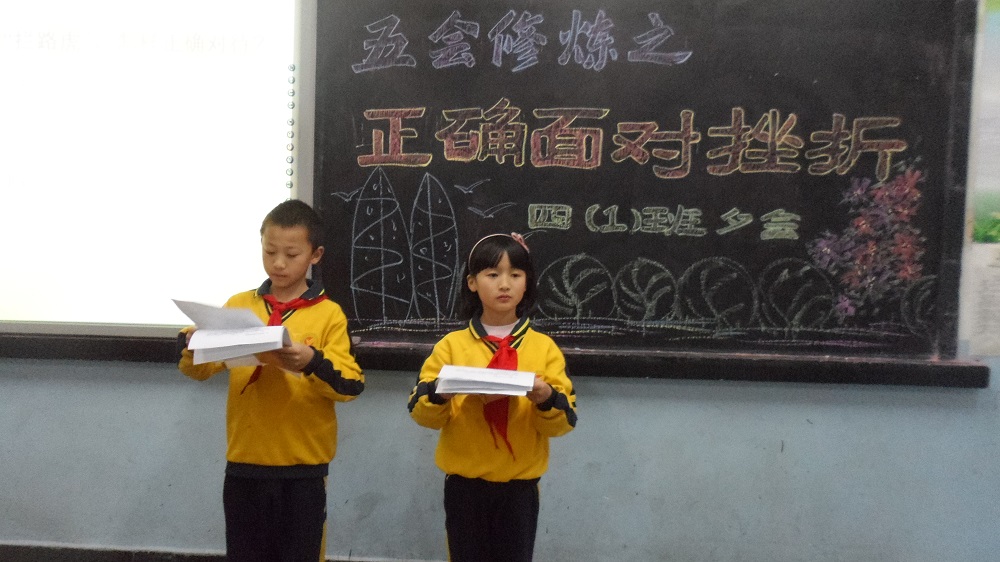 四(1)班班干部陳曉圣和鄒宜欣在主持主題班會