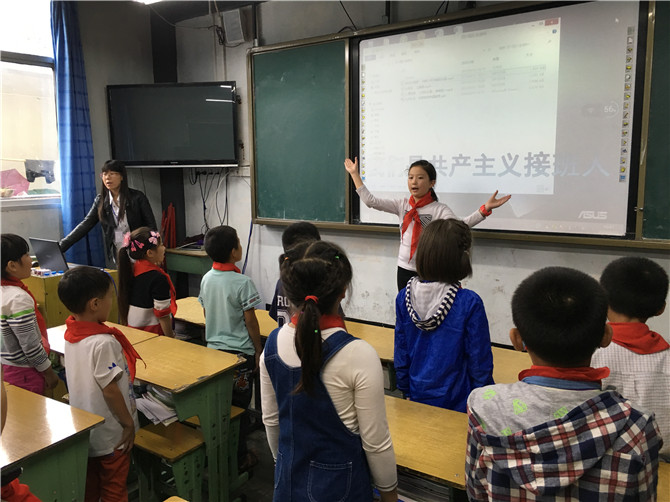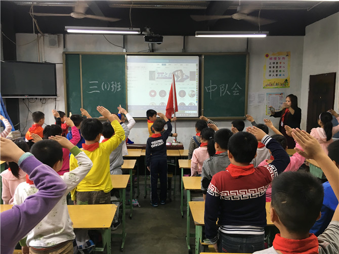 小學(xué)部各中隊輔導(dǎo)員提前做好了PPT課件,輔導(dǎo)員、少先隊員胸前鮮紅的領(lǐng)巾和鮮艷的隊旗交相呼應(yīng)。活動中,各中隊輔導(dǎo)員根據(jù)隊課流程,圓滿完成專題隊課活動。輔導(dǎo)員們通過精美的課件形式,形象生動地給少先隊員講解中國少年先鋒隊的隊名、創(chuàng)立者、領(lǐng)導(dǎo)者、隊旗、隊歌、紅領(lǐng)巾、呼號、作風(fēng)、誓詞等,從多方面向少先隊員講述了中國少年先鋒隊組織的相關(guān)知識。