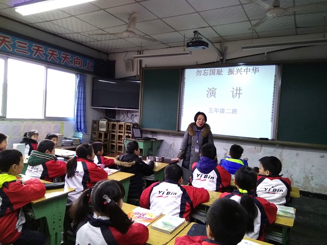 2016年11月25日,四川私立宜賓育才學校五年級兩個班在班主任丁吉萍老師和范玲老師的精心組織下,開展了“勿忘國恥,振興中華”演講活動,對學生們進行了愛國主義教育。