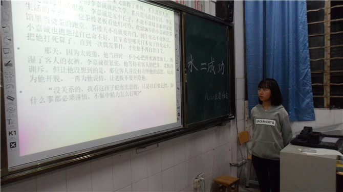 八年級兩個班即將面臨小三科(地理、生物、信息技術)中考,兩位班主任針對班上有的同學心中沒有目標,缺乏上進心的現象,分別以“是什么原因讓你放棄夢想”、“勤奮+汗水=成功”為話題讓同學們展開討論,并讓同學們觀看了由弱變強,由失敗走向成功的勵志故事。兩個班的學生從中明白了許多道理,提高了自信心。