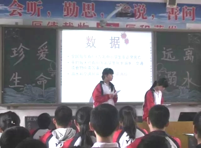 七(3)班班主任袁利信老師開展的是 《珍愛生命,遠離溺水》 的主題班會。在班會的進行過程中,主持人生動有趣的主持,溺水事故的相關PPT以及視頻的播放,加深了同學們對溺水事故的認識。結合趣味問答活動的進行,同學們都發表了自己對溺水事故的獨到見解。整個活動過程中,氣氛活躍,掌聲不斷,全體同學積極參與班會課活動。最后,通過班主任對各種溺水事故的PPT展示和溺水事故發生的原因剖析,同學們都感觸很大,充分意識到了生活中存在的溺水隱患,也懂得了溺水事故發生時如何自救等基本知識。相信通過此次主題班會,七(3)班全體學生的溺水安全意識會大幅提高。
