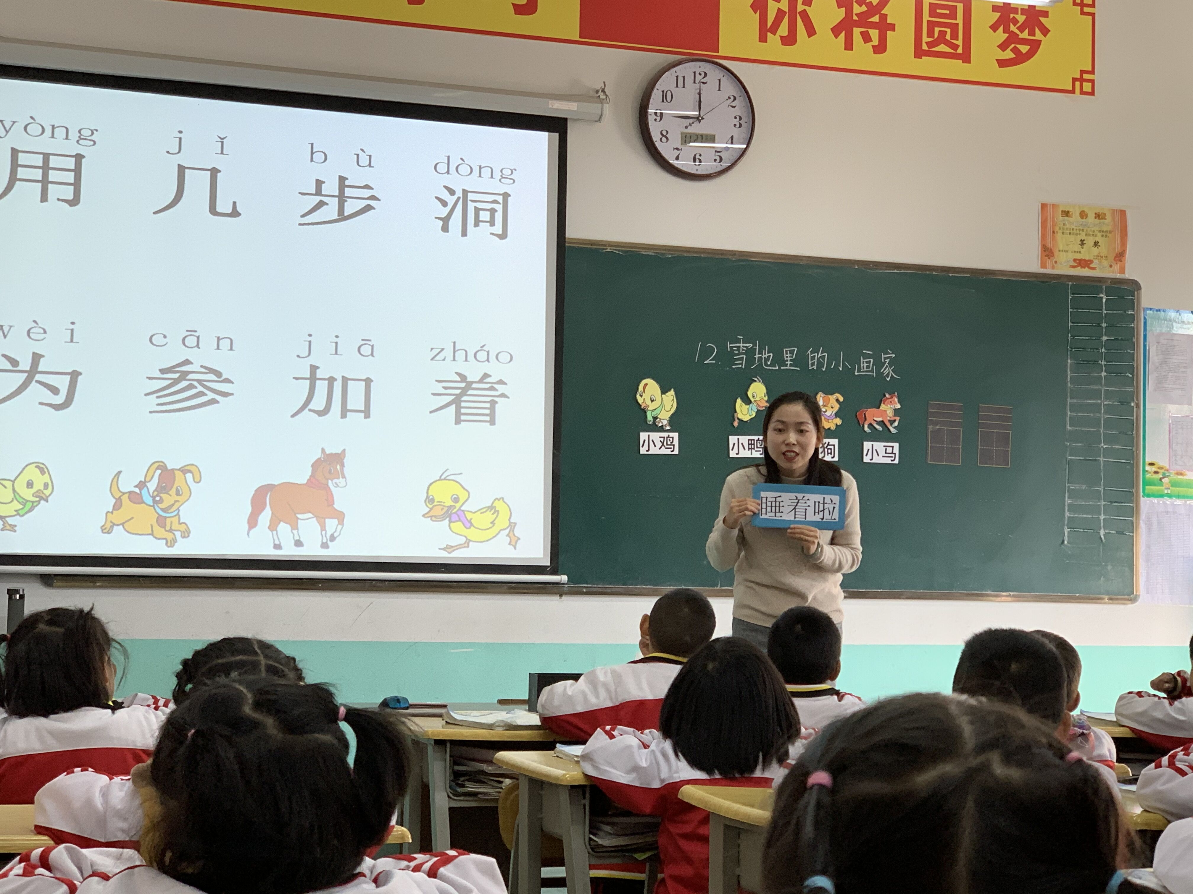 第二節課是由盤龍區龍泉育才學校楊慧老師提供的識字課《雪地里的小畫家》,本節課楊老師結合孩子們的特點,研讀文本、科學設計,為一(1)班的孩子提供了一堂生動有趣的識字課。在課堂上,楊老師結合識字的內容和孩子的年齡特點,重視孩子學習興趣和課堂習慣的培養,突出識字和寫字的訓練重點,強調朗讀訓練,重視識字方法的指導,規范學生寫字習慣和能力的培養。