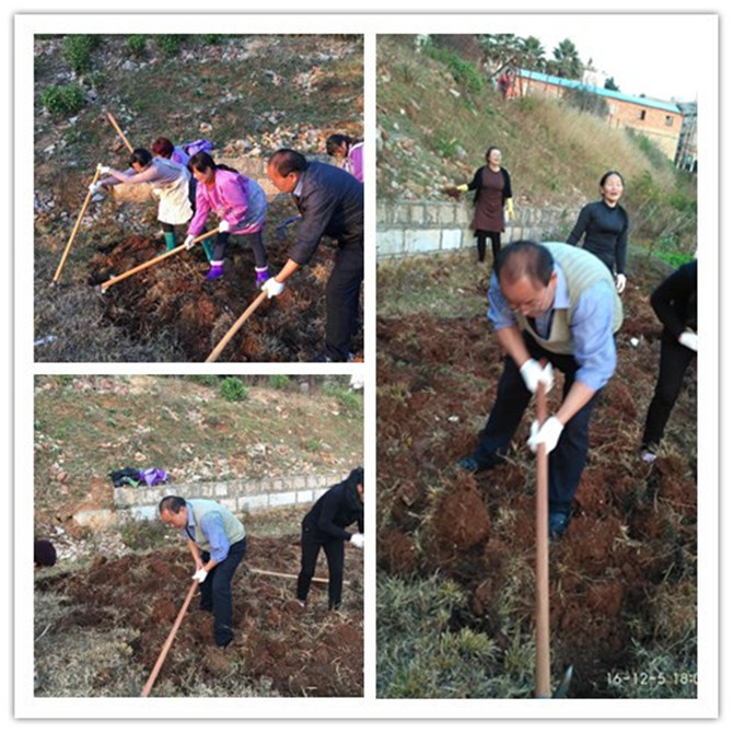 王成順師傅和老師們一起動手開辟幼兒園的菜園子