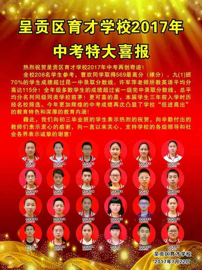 | · | 云南呈貢區育才學校2017年中考特大喜報 | 07-23 |