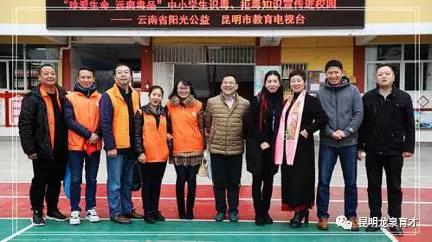 陽光公益志愿者、昆明市教育電視臺領導及盧艷校長合影