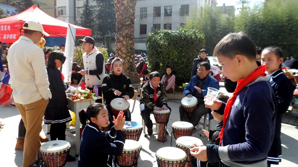 演出結束后,趕廟會活動才算正式開始。于是,學校教師、學生、家長陸續回到了自己的“銷售點”,親自上陣制作美食,以其獨特形式進行“買賣交易”,學生也有模有樣地當起了“小老板”。筆者在現場看到各種小吃是琳瑯滿目,有麻辣燙、炸洋芋、韭菜盒子、炸雞腿、雞柳、燒烤和韓國的紫菜包飯、云南人最愛吃的涼米線、小糖人、棉花糖等等,吸引了眾多的“吃貨”。另外,除了傳統的民間工藝文化,民俗文化之外,“海洋世界”,機器人,科學實驗等人工智能也深深吸引了學生和家長。孩子們在家長的陪伴下,興致勃勃地體驗趕廟會的樂趣,有的買、有的賣、有的玩、有的吃,有的做實驗,忙得不亦樂乎。每個“生意攤點”都圍滿了人,場面格外熱鬧。有的在討價還價,有的為促銷自己的產品真是使出了渾身解數,有的老師或家長還教給學生一些推銷手段,或鼓勵學生爭當推銷員,端著實物“上門推銷”,有的正耐心地向顧客介紹自己的產品,以甜言蜜語引誘顧客“上鉤”,有的就干脆在攤位前直接大聲吆喝,以吸引顧客前來購買。此時,學校操場上人頭攢動,呈現出“趕廟會”特有的熱鬧景象。