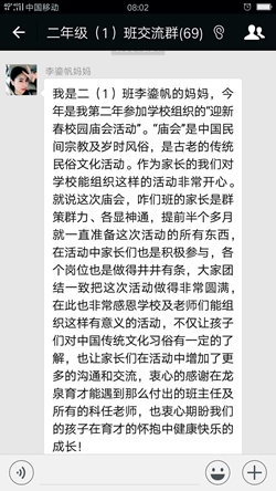 廟會是一個國家的傳統文化的傳承平臺,也是我國古老民俗文化活動,龍泉育才今天成功舉辦的第四屆廟會活動,旨在為孩子們提供一個生活的大課堂,引導學生自主參與、學會合作、培養學生的創新思維、實踐能力、組織、策劃能力及責任意識。活動在藝體組的精心策劃下,在學校領導、家長、老師、學生的團結協作和共同努力下取得了圓滿成功。參與的家長在廟會結束后紛紛在微信平臺發表自己的感言。