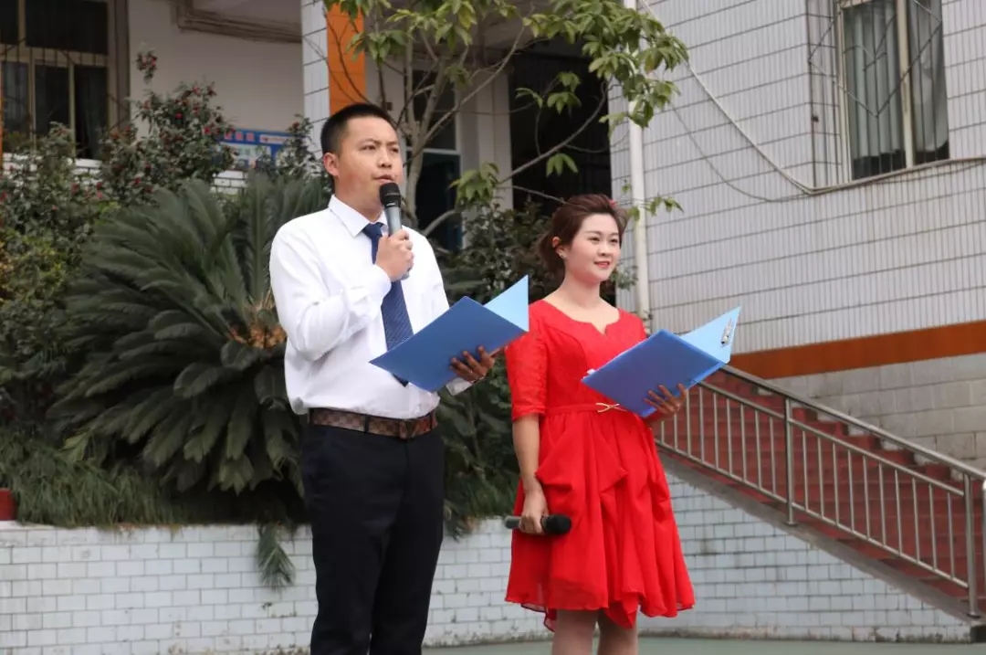 升國(guó)旗、校旗:“立——正,向右——轉(zhuǎn),升旗手、護(hù)旗手就位!出旗!”隨著主持人吳沁雨老師響亮的口令聲,大會(huì)開(kāi)始了第一項(xiàng):升旗儀式。