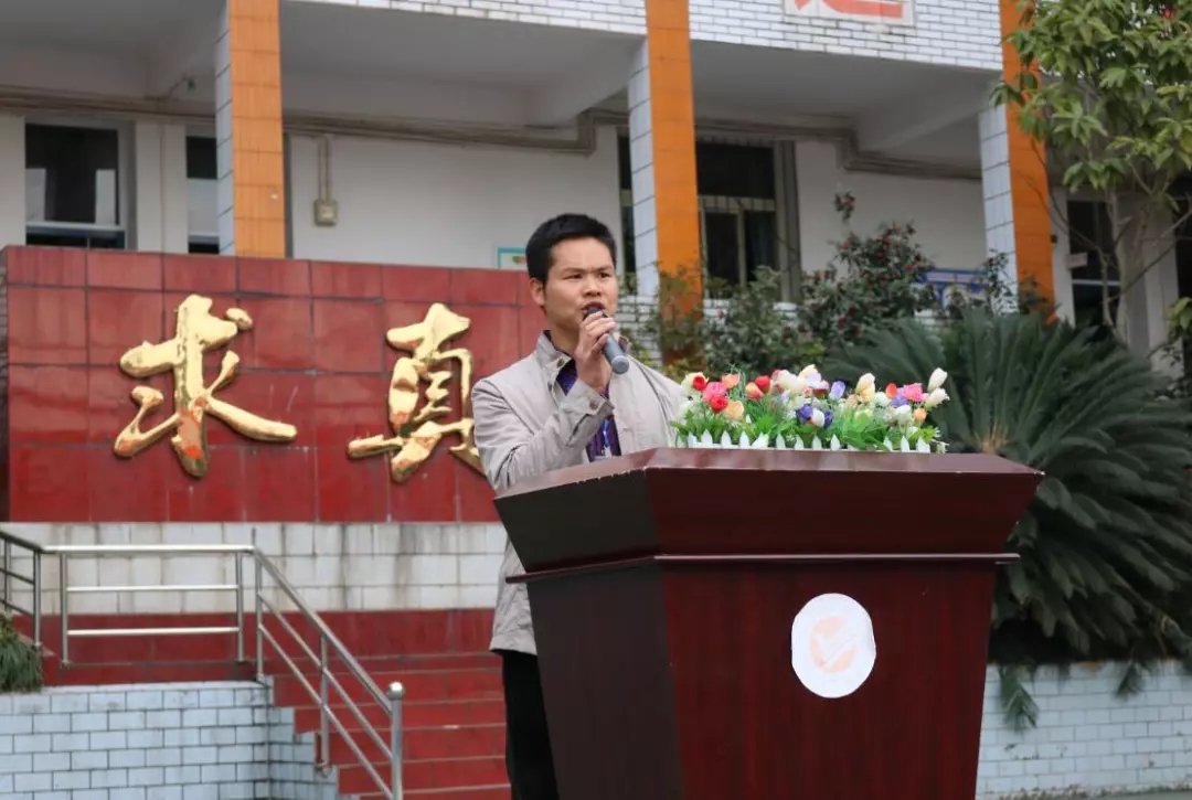 又是一年春草綠 百日沖刺正當(dāng)時(shí):開(kāi)學(xué)典禮第三項(xiàng)是初三年級(jí)組長(zhǎng)蔣智發(fā)表主題為《又是一年春草綠,百日沖刺正當(dāng)時(shí)》演講。