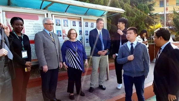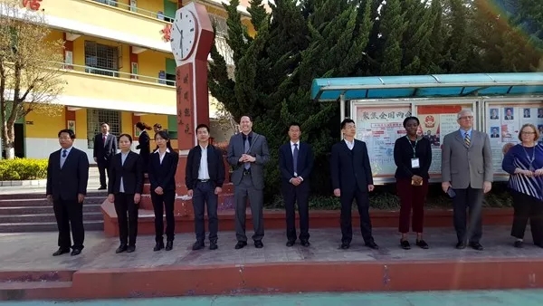 2018年3月30日,呈貢區育才學校喜迎美國學校參訪團到校考察交流。他們來自大洋彼岸的美國,分別由美國加州,理士滿市塞拉斯大學預備高中;佛羅里達州,圣彼德斯堡諾斯賽德基督學校;佛羅里達州,朱庇特朱庇特基督學校;賓夕法尼亞州,伯利恒市伯利恒高中等學校的校長、協調員、校長助理、初中部校長、招生代表等相關人員組成。在參觀校園、學生精神風貌操之后,主要活動是課堂教學交流和課外活動。分別在七年級1班和八年級2班進行。課堂教學和課外活動均由美方教師組織,本校英語老師全程配合。這樣的場景,外教老師、純英語教學和課外活動,零距離交流,既是對本校學生平時所學知識的考察,也是對開口講英語的激勵和檢驗,更是在對外交流活動中對學生文明禮儀交往能力的檢驗。