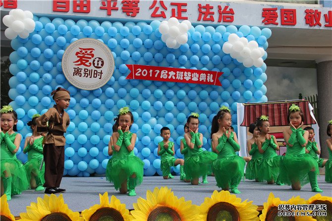 美麗的夏天,奔跑的七月;彩色的盛裝,七彩的夢。2017年7月17日,云南呈貢育才幼兒園為即將踏入小學大門的2017屆大班畢業生,舉行了以“愛在離別時”為主題的畢業典禮活動。云南育才教育集團郭跨存董事長、總部領導、呈貢育才學校、龍泉育才學校的校(園)長及部分老師、云南省工商學院領導、呈貢青少年宮領導及呈貢一中、呈貢一幼、雨花街道中心幼兒園領導應邀參加了此次活動。活動分為授牌儀式與表彰儀式、巡禮活動、才藝演出三個部分: