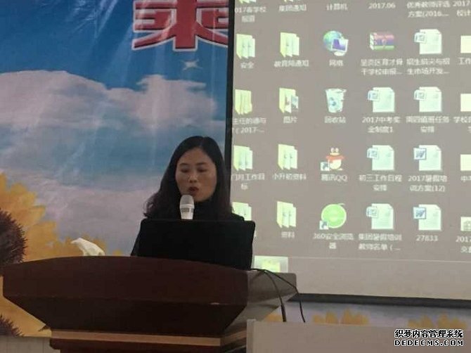 劉世聯校長作以“2017—2018學校計劃展望”為主題進行發言,對學校本學期取得的成績和存在的問題進行了總結。他用大量的事例和數據向全體教職工總結了七個方面的主要成績:宿舍的改善、安全保障、幫扶工程、教師成長、教學成績、本學期鞏固率和直升率。劉校長強調說,在集團的領導下,在全體教職工的團結努力下,學校在名校林立的壓力下取得了輝煌的成績。同時他指出了諸如在德育管理和教學管理上的一些問題和不足,如班主任工作的到位還需加強,后進生的幫扶、教師駕馭課堂教學的能力、青年教師的幫扶等方面還需進一步改進等。