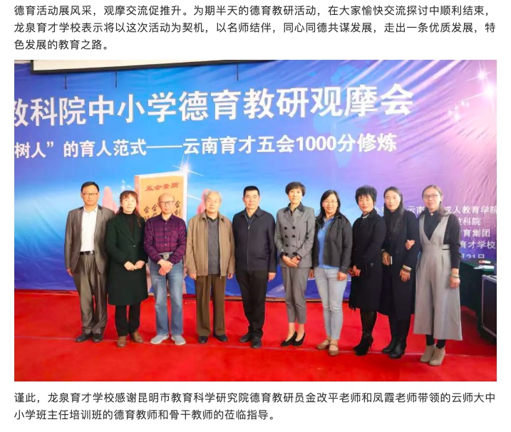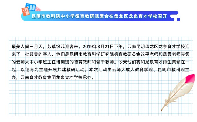 昆明市教科院中小學(xué)德育教研觀摩會在盤龍區(qū)龍泉育才學(xué)校召開