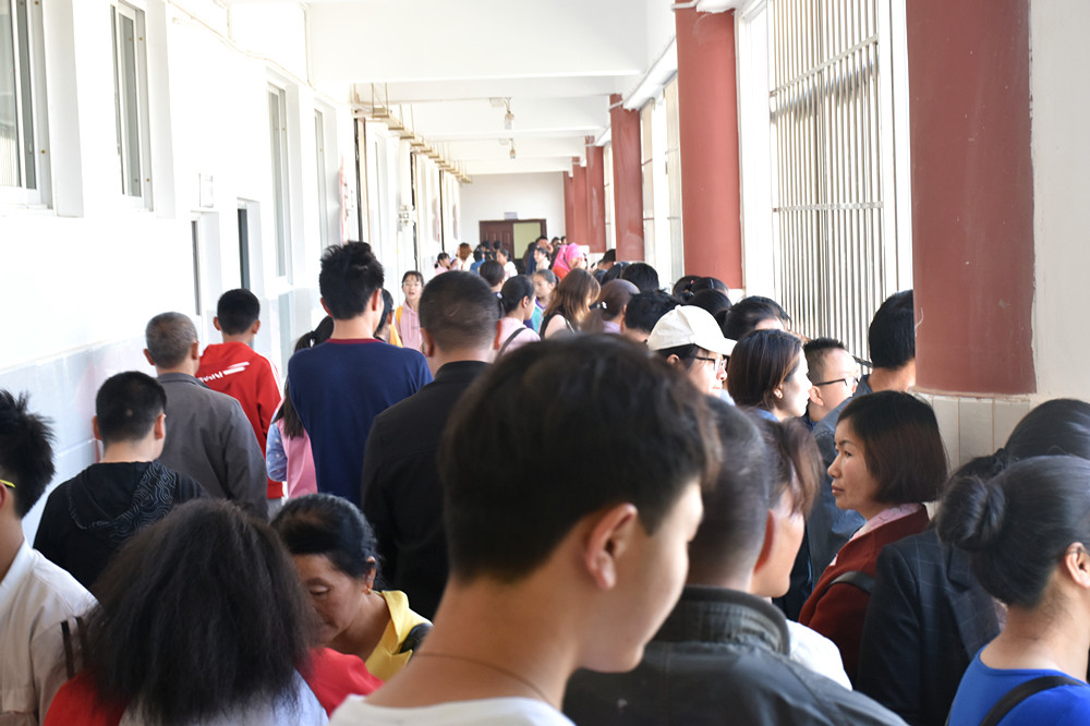 參加活動的孩子和家長陸續進入校園,學校教師代表夾道歡迎。一時間,登記處擠滿了學生和家長,人潮涌動,氣氛熱烈。