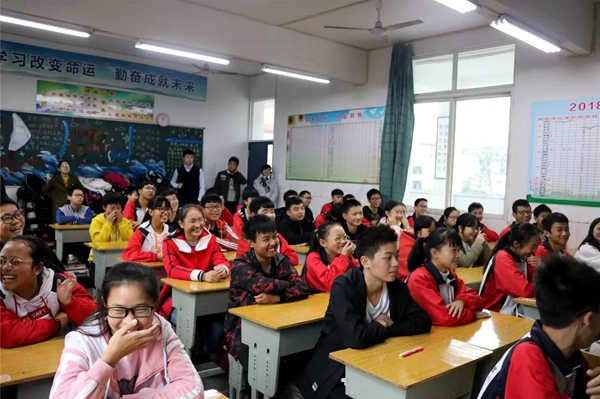 11月的宜賓,天氣陰冷。但絲毫沒有影響育才學(xué)子點(diǎn)燃?jí)粝氲募で椤?7日一大早,郭植、鄧宏兩位老師開始走進(jìn)初中部每一個(gè)班,與同學(xué)們暢談?dòng)判@時(shí)光、分享留學(xué)經(jīng)歷。教室里不時(shí)傳出歡聲笑語和雷鳴般的掌聲。