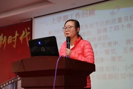 龍泉育才學校盧艷校長最后重點分析了上學期教學方面存在的主要問題和短板,她希望全體教師在新學期里要:咬住目標找差距,抓住質量不放松,乘勢而上,擔當責任;咬住常規,以踏實的工作作風、學風去努力實現目標。