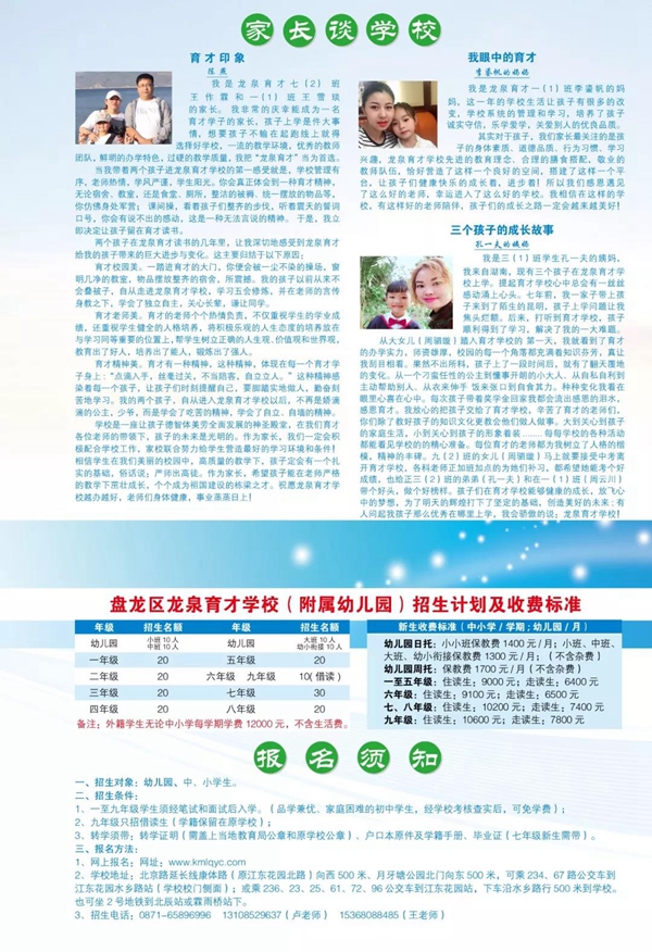 盤龍區龍泉育才學校2018年春季電子版招生簡章